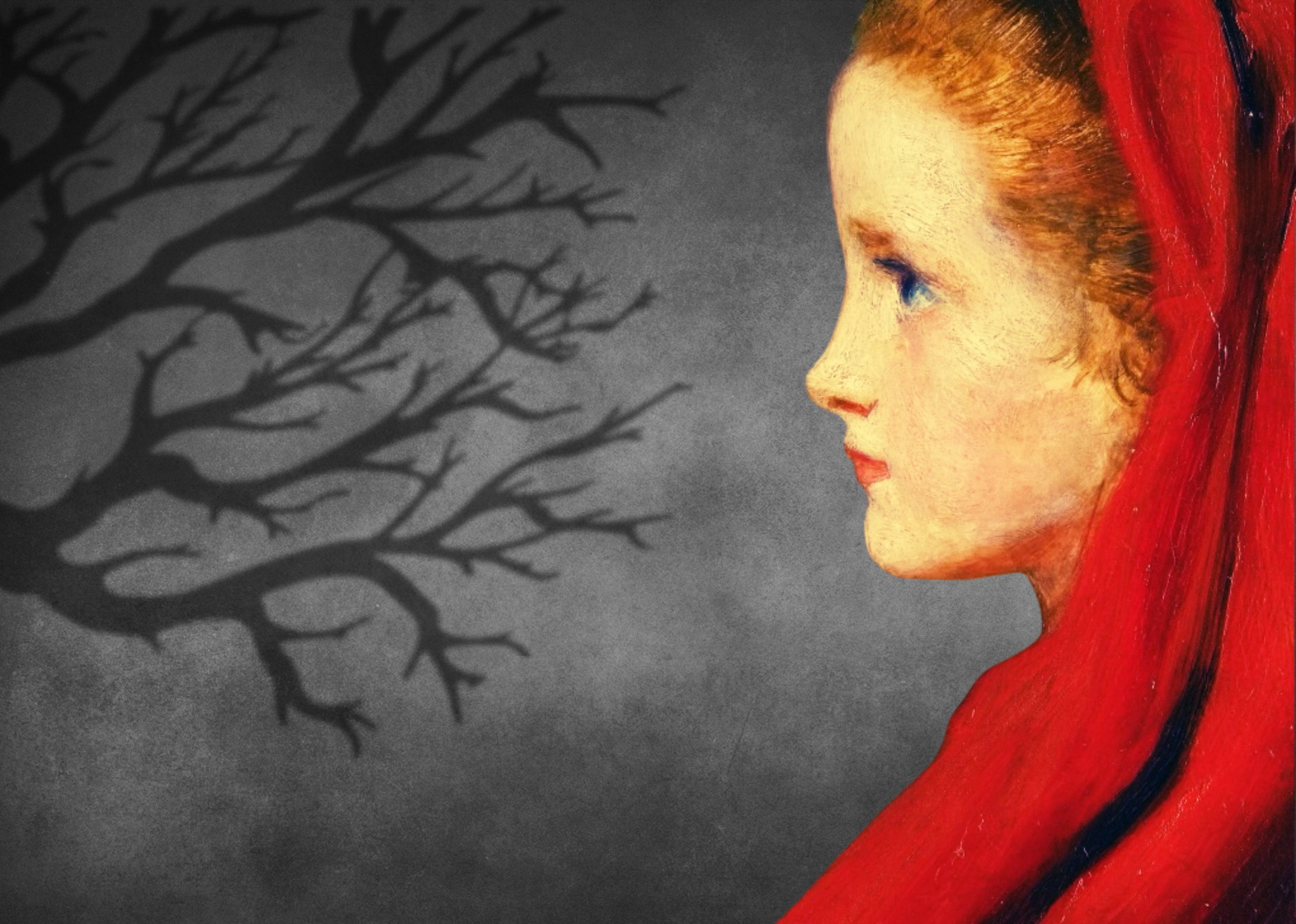 Preview image and main post image: an edit of βRed Riding Hoodβ by John Everett Millais, 1864. Oil on panel. Public domain. Edit by me.
